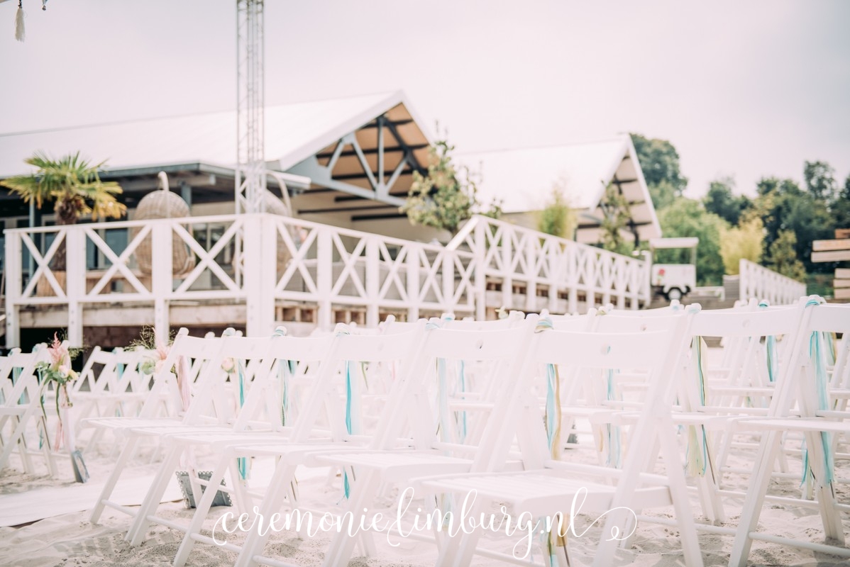 Zijn jullie op zoek naar een ceremoniesetting met stoeltjes, decoratie en parasols? Neem dan contact op voor de mogelijkheden.